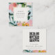 Boho Colourful Pink Blue Painted Floral QR Code Square Business Card
