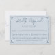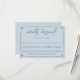 A simple and elegant calligraphy wedding RSVP card. That has a cool blue background and marina blue hand drawn frame and info.