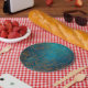 Boho Copper Blue Script Handwriting Grunge Paper Plate