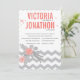 Boho Coral Navy Gray Chevron Typography Wedding Invitation