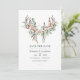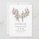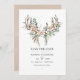 Dusty brown rustic silk cotton balls and eucalyptus leaves wedding save the date with boho feathers and horns. Ideal for any given theme or garden wedding.