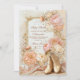 A rustic chic baby shower design featuring cowgirl boots accented with blush pink peonies, soft greenery, and shimmering gold details. Perfect for a western-themed celebration with a feminine floral twist.
