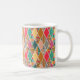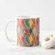 This mug has a Boho design of diamonds with different patterns alternating with solid diamonds in a Boho colour palette.