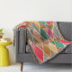 This throw blanket has a Boho design of diamonds with different patterns alternating with solid diamonds in a Boho colour palette.