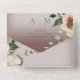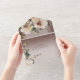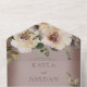 This simple yet elegant design has cream and brown roses on a soft white blur overlay with a brown background. The front flap contains the bride and groom's first initials. This design is available with or without dinner options on the RSVP card. Go to my store, Simply Farmhouse Press to choose either version. Personalised All-In-One invitations are a unique combination of both a beautifully printed custom invitation with an easy to tear off perforated RSVP postcard. And they are so easy to use! You simply fold, then seal the back flap with the three included clear stickers, and mail. And when your guests receive your custom invite, they just tear the perforated RSVP Card off and drop it back in the mail to you!