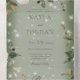 Boho Cream Roses Sparkle Sage Green Dinner All In One Invitation