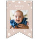 Celebrate your little one's journey with our Daisy First Birthday Banner. This boho bunting banner features a flag for each month of your baby's first year, allowing you to customise it with photos for each milestone. The banner is adorned with daisy accents and modern typography for a charming touch. Choose from three neutral colorways - beige, dusty rose, and grey-blue - to perfectly complement your decor. Celebrate with precious memories and create a beautiful keepsake with this adorable banner.