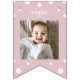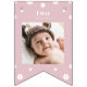 Celebrate your little one's journey with our Daisy First Birthday Banner. This boho bunting banner features a flag for each month of your baby's first year, allowing you to customise it with photos for each milestone. The banner is adorned with daisy accents and modern typography for a charming touch. Choose from three neutral colorways - beige, dusty rose, and grey-blue - to perfectly complement your decor. Celebrate with precious memories and create a beautiful keepsake with this adorable banner.