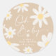 This round sticker is part of the Floral Daisy baby shower collection chraacterised by retro style with watercolor daisy flowers and neutral desert colours that is suitable for boy and girl, or gender-neutral baby shower. With countless customisation options, this template is easily customisable to all events and easy to match with your colours.