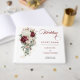 The floral watercolor artwork highlights lush burgundy roses paired with soft white blooms, symbolising passion and purity. Touches of gold leaf accents add sophistication and a modern twist, making this design perfect for boho chic weddings, rustic barn ceremonies, vineyard celebrations, autumn or winter weddings, and elegant garden receptions.
