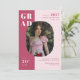 Invite guests to your graduation party with this chic minimal boho photo graduation party invitation template. The design features one photo, boho colour palette including dark rose and soft pink, and bold modern typography. Personalise it with your details and favourite photo.