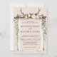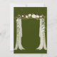 Design features a printed coloured foliage element in shades of green overlaying a tan kraft paper textures with deer antlers and a white canopy top with calligraphy script or type writing. Great for your wedding celebrations!