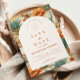 A refined western-inspired design featuring warm desert florals, cacti, and earthy botanicals arranged in a rich, painterly composition. The arched layout adds a timeless architectural feel, balancing the bold surrounding pattern with a clean, elegant centre. Terracotta tones, soft neutrals, and muted greens create a grounded yet romantic palette—perfect for a modern desert or western celebration. Ideal for couples who want something unique, artistic, and effortlessly sophisticated.