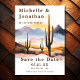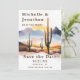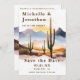 Announce your wedding in style with this boho desert cactus save the date card. Featuring a warm watercolor desert landscape with towering cacti and a golden sunset, this design sets the perfect tone for a rustic, western, or southwestern-themed wedding. Personalise with your names, wedding date, and location to create a unique and memorable keepsake for your guests.