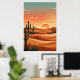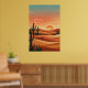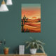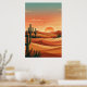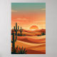 Boho Desert Sunset Dunes with Cactus & Flying Bird Poster