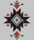 A Southwestern-inspired geometric emblem featuring bold diamond shapes, earthy red and brown tones, and vibrant turquoise accents. The distressed texture adds a handcrafted, vintage feel, giving this design a strong boho-tribal aesthetic.