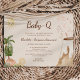 This boho dinosaur beige baby-q baby shower invitation design is a delightful fusion of bohemian charm and prehistoric wonder. This design brings a playful twist to the traditional baby shower, featuring a palette inspired by nature's hues and adorned with adorable dinosaur illustrations. From enchanting invitations to table settings with a touch of rustic flair, each element captures the essence of a boho celebration. Welcome the little adventurer with stylish simplicity and timeless appeal. Our Boho Dinosaur Collection is fully customisable, ensuring that every detail aligns perfectly with your vision. For a personalised touch or any enquiries, don't hesitate to reach out. Make your baby shower a roaring success with our Boho Dinosaur Collection, where creativity meets cuteness!