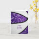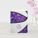 This cute basketball birthday card invitation features the realistic image of an abstractly oversized, stylised basketball that has recolored alternating purple and white panels on the front of the card - a doodle pattern of paislies, flowers and feathers in white covers the basketball's purple panels - customise with your own birthday message - by katz_d_zynes