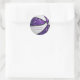 These cute boho sports announcement stickers for her basketball party feature the image of a stylised basketball that has recolored alternating purple and white panels - a doodle pattern of paislies, flowers and feathers in white covers the basketball's purple panels - customise with your custom message - by katz_d_zynes