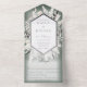 This simple yet elegant design has a frame of beige tan wheat, grasses on a soft white blur overlay with a green background. The front flap contains the bride and groom's first initials. This design is available with or without dinner options on the RSVP card. Go to my store, Simply Farmhouse Press to choose either version. Personalised All-In-One invitations are a unique combination of both a beautifully printed custom invitation with an easy to tear off perforated RSVP postcard. And they are so easy to use! You simply fold, then seal the back flap with the three included clear stickers, and mail. And when your guests receive your custom invite, they just tear the perforated RSVP Card off and drop it back in the mail to you!