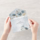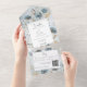 AVAILABLE WITH OR WITHOUT A QR CODE TO SCAN IN THE RSVP AREA OR WITH OR WITHOUT DINNER OPTIONS. This design is simple and beautiful, complete with the groom or bride's last initial on the outside flap. This design features dusty blue bohemian wildflowers with tan brown foliage. Also add a customised QR code to your invitation so that gusts can quickly access your wedding Website for details, directions, menu options, and more, or add your gift registry Web URL. Personalised All-In-One invitations are a unique combination of both a beautifully printed custom invitation with an easy to tear off perforated RSVP postcard. And they are so easy to use! You simply fold, then seal the back flap with the three included clear stickers, and mail. And when your guests receive your custom invite, they just tear the perforated RSVP Card off and drop it back in the mail to you!