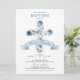 Boho Dusty Blue Floral Cross Baptism Invitation