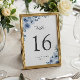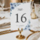 Boho Dusty Blue Floral Wedding Table Number Card.