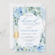 Boho dusty blue flowers greenery brunch and bubbly invitation
