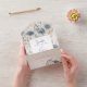 AVAILABLE WITH OR WITHOUT A QR CODE TO SCAN IN THE RSVP AREA OR WITH OR WITHOUT DINNER OPTIONS. This design is simple and beautiful, complete with the groom or bride's last initial on the outside flap. This design features dusty blue bohemian wildflowers with tan brown foliage on a mottled tan background. Also add a customised QR code to your invitation so that gusts can quickly access your wedding Website for details, directions, menu options, and more, or add your gift registry Web URL. Personalised All-In-One invitations are a unique combination of both a beautifully printed custom invitation with an easy to tear off perforated RSVP postcard. And they are so easy to use! You simply fold, then seal the back flap with the three included clear stickers, and mail. And when your guests receive your custom invite, they just tear the perforated RSVP Card off and drop it back in the mail to you!