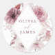 Boho Dusty Rose & Mauve Floral Frame Wedding Classic Round Sticker