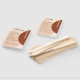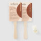 A modern and elegant wedding program hand fan giving a boho rustic vibe with its abstract circle and rectangle shapes pattern in monochromatic earth-toned hues of terracotta, burnt orange and beige.