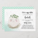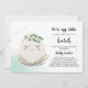 For the Mum-to-be of a little hatchling, choose this modern easter themed baby shower invitation. Decorated a with an adorable smiling egg illustration sitting in a nest with a eucalyptus wreath crown upon its head. Invitation features the phrases "We're egg-static", " A little one is about to hatch". Personalise with your baby shower details beneath. The backside of these invitations features a matching mint and white polka dot background. Great for a girl baby shower or gender neutral baby shower.