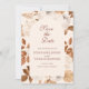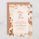 This boho terracotta wedding save-the-date card features white peonies, hortensia, and golden leaves on a light background. This design is ideal for a modern elegant outdoor summer wedding. Find matching products and sets in Boho Terracotta Wedding Collection. A printable file is available.