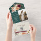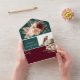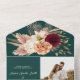 Elegant emerald green boho all-in-one wedding invitation with burgundy, peach, and ivory watercolor florals. Includes RSVP section with a scannable QR code, perfect for modern couples. Features your custom photo and personalised wedding details. Easy to edit. For help, email: bpkolman@gmail.com