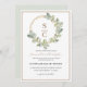 Simple and elegant is this sage green eucalyptus wedding invitation template. Featuring original watercolor eucalyptus artwork arranged in a romantic wreath with gold rings. Customise the text to create something really unique.