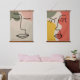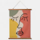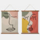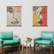 Two Boho muted tones abstract face facial wall art tapestries. Set of two.
