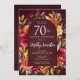 Boho Fall Burgundy Floral Script 70th Birthday Invitation