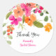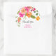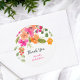 A boho chic orange, pink and green floral watercolor bridal shower thank you sticker with pretty hand painted flowers in and blooms with greenery foliage. A pretty garden party bridal shower with a modern script font brush.