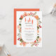Boho fall terracotta floral script gender neutral baby shower invitation featuring pretty hand painted warm hues of terracotta, peach and dark greenery with a round mask. Perfect for fall boho themed baby shower party. With a modern script typography.
