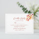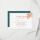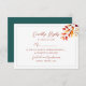 Elegant and seasonal, this teal and orange fall wedding RSVP card features watercolor autumn foliage and a simple, classic layout for collecting guest responses. With space for meal preferences and a return by date, it's perfect for coordinating with your autumn-themed wedding suite. Fully customisable to match your event details and personal style.