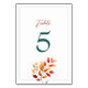 Guide your guests with this minimalist yet eye-catching boho fall wedding table number card. Featuring a clean white background, autumn watercolor foliage, and elegant calligraphy, it blends rustic charm with modern style. Fully customisable to suit your reception décor or seating plan.