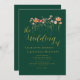 Boho Fall Wildflower Wedding Invitation with RSVP QR Code in Dark Emerald Green, gold, Rust & Terracotta