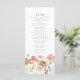 Bring a touch of wild, autumnal beauty to your wedding table with this Boho Fall Wildflower Meadow navy blue and white Wedding Menu. Inspired by the colours and textures of a sun-drenched meadow in late autumn, this design features hand-painted watercolor florals in earthy tones of burnt orange, terracotta, golden yellow, plum, coral, peach, and soft pink. The layout pairs a flowing, navy blue elegant modern yet relaxed typography, creating a dreamy balance between nature and elegant sophistication. Perfect for fall weddings with a rustic bohemian, garden, or rustic vibe, this menu adds a personal, artful touch to your reception. Designed with original artwork by Catherine Sweetman, it’s fully customisable to reflect your unique style and menu, making it a beautiful keepsake and a warm welcome for your guests.