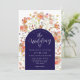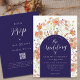 Boho Fall Wildflower Navy Blue White Wedding Invitation