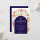 Navy Blue and White Fall Wedding Invitation with Wildflower Arch and QR Code – Editable Boho Floral Template