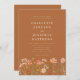 Boho Fall Wildflower Meadow Wedding Invitation, a stunning blend of autumnal charm and elegant sophistication. This watercolor masterpiece showcases hand-painted wildflowers in a vibrant garden meadow, with a rich palette of burnt orange, terracotta, brown, purple, yellow, coral, burnt umber, peach, and soft pink, capturing the warmth and beauty of the fall season.