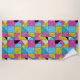 Boho Faux Patchwork Quilt Pink Yellow Blue Beach Towel