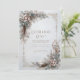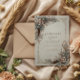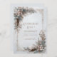 Invite your guests to a celebration of bohemian romance and natural elegance with this exquisite wedding invitation. The design features a serene light gray-blue background with subtle texture, providing an ethereal atmosphere. The borders are lavishly anchored by asymmetrical clusters of soft, layered beige and brown feathers, accented by dusty pink and muted slate blue flowers, and stylized foliage. Delicate gold chain scrollwork and small jewel accents run along the vertical sides, framing the central space and adding an element of antique luxury. The overall aesthetic beautifully blends cool, earthy textures with opulent metallic accents, perfectly setting the stage for a unique, stylish, or celestial-themed wedding. This invitation card is ideally suited for a bohemian style wedding, a chic engagement celebration, or an outdoor fall reception. It would also perfectly suit a sophisticated winter destination event or a serene, elegant vow renewal ceremony. The card's captivating blend of pristine florals and a moody, monochromatic backdrop ensures it is versatile for any solemn ceremony, corporate gala, or refined birthday announcement.