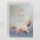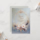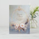 Invite your guests to a celebration of opulent romance and ethereal beauty with this exquisite wedding invitation. The design centers on a stunning central thin gold circular frame set against a soft, luminous pale blue and lavender backdrop. The frame is intricately detailed with ornate baroque scrollwork and highlighted by striking purple and pink gemstone accents. This entire composition is gorgeously framed by a lavish wreath composed of soft, layered beige and brown feathers, accented by pristine white and soft pink daisy-like flowers. The aesthetic beautifully merges the earthy, organic texture of feathers with rich, antique metallic accents, perfectly setting the stage for a luxurious, stylish, or celestial-themed wedding. This invitation card is ideally suited for a bohemian style wedding, a chic formal engagement celebration, or an elegant celestial-themed party. It would also perfectly suit a sophisticated winter destination event or a serene, elegant vow renewal ceremony.