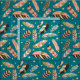 This unique fabric features a pattern of boho style feather images in colours of teal blue, gold, dark grey, dusty pink and cream. Pretty and distinctive for many household or craft projects, or attire.